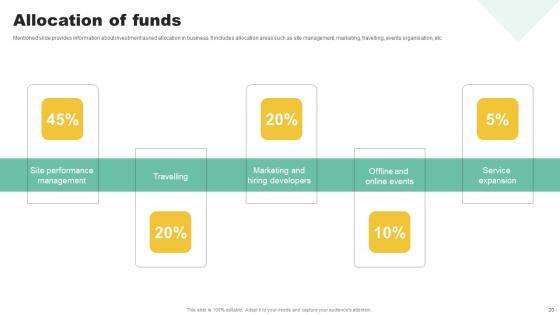 Mentioned slide provides information about investment asked allocation in business. It includes allocation areas such as site management, marketing, travelling, events organisation, etc. The best PPT templates are a great way to save time, energy, and resources. Slidegeeks have 100 percent editable powerpoint slides making them incredibly versatile. With these quality presentation templates, you can create a captivating and memorable presentation by combining visually appealing slides and effectively communicating your message. Download Allocation Of Funds Social Community Management Solution Funding Pitch Presentation Information Pdf from Slidegeeks and deliver a wonderful presentation. Mentioned slide provides information about investment asked allocation in business. It includes allocation areas such as site management, marketing, travelling, events organisation, etc.