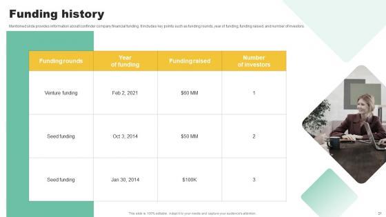 Mentioned slide provides information about Iconfinder company financial funding. It includes key points such as funding rounds, year of funding, funding raised, and number of investors. Boost your pitch with our creative Funding History Social Community Management Solution Funding Pitch Presentation Microsoft Pdf. Deliver an awe inspiring pitch that will mesmerize everyone. Using these presentation templates you will surely catch everyones attention. You can browse the ppts collection on our website. We have researchers who are experts at creating the right content for the templates. So you do not have to invest time in any additional work. Just grab the template now and use them. Mentioned slide provides information about Iconfinder company financial funding. It includes key points such as funding rounds, year of funding, funding raised, and number of investors.