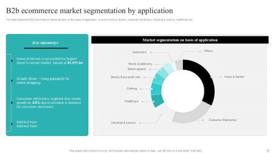 This slide represents B2b ecommerce market division on the basis of application. It covers home and kitchen, consumer electronics, industrial and science, healthcare etc. The Strategic Ecommerce Plan For B2B Enterprises B2b Ecommerce Market Segmentation By Application Elements PDF is a compilation of the most recent design trends as a series of slides. It is suitable for any subject or industry presentation, containing attractive visuals and photo spots for businesses to clearly express their messages. This template contains a variety of slides for the user to input data, such as structures to contrast two elements, bullet points, and slides for written information. Slidegeeks is prepared to create an impression.