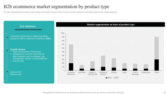 This slide represents B2b ecommerce market division on the basis of type of product. it covers consumer electronics, automotive, personal care, clothing, sports etc. Are you searching for a Strategic Ecommerce Plan For B2B Enterprises B2b Ecommerce Market Segmentation By Product Type Background PDF that is uncluttered, straightforward, and original Its easy to edit, and you can change the colors to suit your personal or business branding. For a presentation that expresses how much effort you have put in, this template is ideal With all of its features, including tables, diagrams, statistics, and lists, its perfect for a business plan presentation. Make your ideas more appealing with these professional slides. Download Strategic Ecommerce Plan For B2B Enterprises B2b Ecommerce Market Segmentation By Product Type Background PDF from Slidegeeks today.