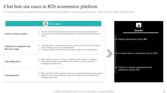 This slide represents use cases for chatbots in B2b ecommerce website with their key benefits. It covers answering customer queries, collection of customer complains, advertising alerts etc. Take your projects to the next level with our ultimate collection of Strategic Ecommerce Plan For B2B Enterprises Chat Bots Use Cases In B2b Ecommerce Platform Introduction PDF. Slidegeeks has designed a range of layouts that are perfect for representing task or activity duration, keeping track of all your deadlines at a glance. Tailor these designs to your exact needs and give them a truly corporate look with your own brand colors they will make your projects stand out from the rest