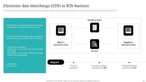 This slide represents electronic data interchange technology that helps B2b business in data exchange and automate process. It includes purchase order, invoice, customer satisfaction etc.. Want to ace your presentation in front of a live audience Our Strategic Ecommerce Plan For B2B Enterprises Electronic Data Interchange EDI In B2b Business Summary PDF can help you do that by engaging all the users towards you.. Slidegeeks experts have put their efforts and expertise into creating these impeccable powerpoint presentations so that you can communicate your ideas clearly. Moreover, all the templates are customizable, and easy-to-edit and downloadable. Use these for both personal and commercial use.