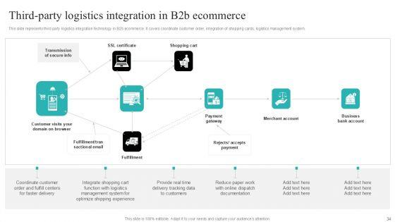 This slide represents third party logistics integration technology in B2b ecommerce. It covers coordinate customer order, integration of shopping cards, logistics management system. Take your projects to the next level with our ultimate collection of Strategic Ecommerce Plan For B2B Enterprises Third Party Logistics Integration In B2b Ecommerce Pictures PDF. Slidegeeks has designed a range of layouts that are perfect for representing task or activity duration, keeping track of all your deadlines at a glance. Tailor these designs to your exact needs and give them a truly corporate look with your own brand colors they will make your projects stand out from the rest
