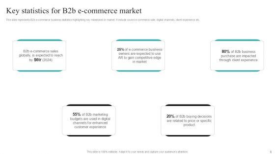 This slide represents B2b e-commerce business statistics highlighting key milestones in market. It include covers e-commerce sale, digital channels, client experience etc. Do you have an important presentation coming up Are you looking for something that will make your presentation stand out from the rest Look no further than Strategic Ecommerce Plan For B2B Enterprises Key Statistics For B2b E Commerce Market Themes PDF. With our professional designs, you can trust that your presentation will pop and make delivering it a smooth process. And with Slidegeeks, you can trust that your presentation will be unique and memorable. So why wait Grab Strategic Ecommerce Plan For B2B Enterprises Key Statistics For B2b E Commerce Market Themes PDF today and make your presentation stand out from the rest