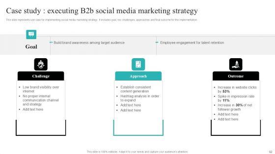 This slide represents use case for implementing social media marketing strategy. It includes goal, key challenges, approaches and final outcome for the implementation. Here you can discover an assortment of the finest PowerPoint and Google Slides templates. With these templates, you can create presentations for a variety of purposes while simultaneously providing your audience with an eye-catching visual experience. Download Strategic Ecommerce Plan For B2B Enterprises Case Study Executing B2b Social Media Marketing Rules PDF to deliver an impeccable presentation. These templates will make your job of preparing presentations much quicker, yet still, maintain a high level of quality. Slidegeeks has experienced researchers who prepare these templates and write high-quality content for you. Later on, you can personalize the content by editing the Strategic Ecommerce Plan For B2B Enterprises Case Study Executing B2b Social Media Marketing Rules PDF.