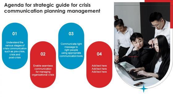 Retrieve professionally designed Agenda For Strategic Guide For Crisis Communication Planning Management Diagrams Pdf to effectively convey your message and captivate your listeners. Save time by selecting pre made slideshows that are appropriate for various topics, from business to educational purposes. These themes come in many different styles, from creative to corporate, and all of them are easily adjustable and can be edited quickly. Access them as PowerPoint templates or as Google Slides themes. You do not have to go on a hunt for the perfect presentation because Slidegeeks got you covered from everywhere. Our Agenda For Strategic Guide For Crisis Communication Planning Management Diagrams Pdf are topically designed to provide an attractive backdrop to any subject. Use them to look like a presentation pro.