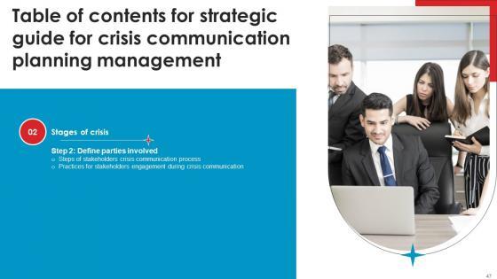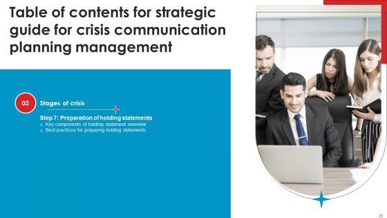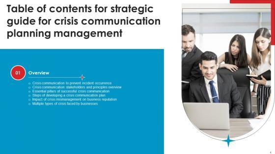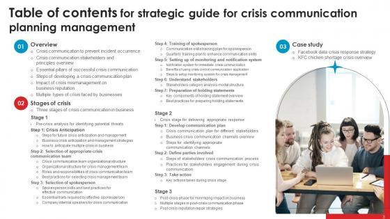 This Strategic Guide For Crisis Communication Planning Management Table Of Contents Icons Pdf from Slidegeeks makes it easy to present information on your topic with precision. It provides customization options, so you can make changes to the colors, design, graphics, or any other component to create a unique layout. It is also available for immediate download, so you can begin using it right away. Slidegeeks has done good research to ensure that you have everything you need to make your presentation stand out. Make a name out there for a brilliant performance. Our Strategic Guide For Crisis Communication Planning Management Table Of Contents Icons Pdf are topically designed to provide an attractive backdrop to any subject. Use them to look like a presentation pro.