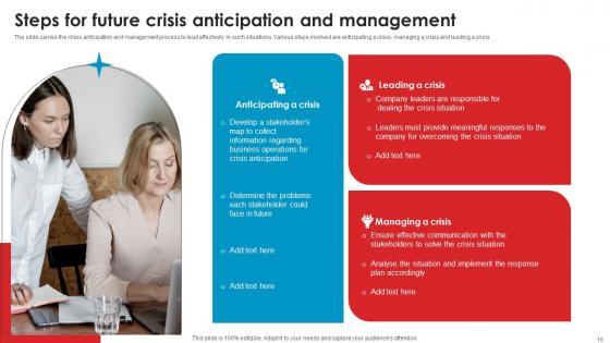 The slide carries the crisis anticipation and management process to lead effectively in such situations. Various steps involved are anticipating a crisis, managing a crisis and leading a crisis Are you searching for a Steps For Future Crisis Anticipation Strategic Guide Crisis Communication Planning Structure Pdf that is uncluttered, straightforward, and original Its easy to edit, and you can change the colors to suit your personal or business branding. For a presentation that expresses how much effort you have put in, this template is ideal With all of its features, including tables, diagrams, statistics, and lists, its perfect for a business plan presentation. Make your ideas more appealing with these professional slides. Download Steps For Future Crisis Anticipation Strategic Guide Crisis Communication Planning Structure Pdf from Slidegeeks today. The slide carries the crisis anticipation and management process to lead effectively in such situations. Various steps involved are anticipating a crisis, managing a crisis and leading a crisis