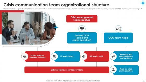 The slide illustrates a organizational chart for crisis communication team to take corrective actions for preventing the business mishappening. Composition of structure involves team of CCO, CCO team head, facilities manager, etc Create an editable Crisis Communication Team Strategic Guide Crisis Communication Planning Microsoft Pdf that communicates your idea and engages your audience. Whether you are presenting a business or an educational presentation, pre designed presentation templates help save time. Crisis Communication Team Strategic Guide Crisis Communication Planning Microsoft Pdf is highly customizable and very easy to edit, covering many different styles from creative to business presentations. Slidegeeks has creative team members who have crafted amazing templates. So, go and get them without any delay. The slide illustrates a organizational chart for crisis communication team to take corrective actions for preventing the business mishappening. Composition of structure involves team of CCO, CCO team head, facilities manager, etc