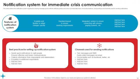 The slide outlines the notification system required for sharing message quickly with the affected parties and crisis communication team. It includes features, best practices and channels used for sending notifications If you are looking for a format to display your unique thoughts, then the professionally designed Notification System For Immediate Strategic Guide Crisis Communication Planning Ideas Pdf is the one for you. You can use it as a Google Slides template or a PowerPoint template. Incorporate impressive visuals, symbols, images, and other charts. Modify or reorganize the text boxes as you desire. Experiment with shade schemes and font pairings. Alter, share or cooperate with other people on your work. Download Notification System For Immediate Strategic Guide Crisis Communication Planning Ideas Pdf and find out how to give a successful presentation. Present a perfect display to your team and make your presentation unforgettable. The slide outlines the notification system required for sharing message quickly with the affected parties and crisis communication team. It includes features, best practices and channels used for sending notifications