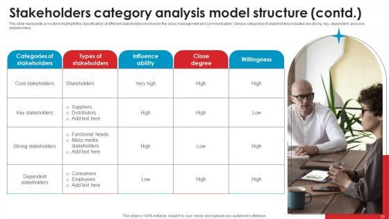 The slide represents a model to highlight the classification of different stakeholders involved in the crisis management and communication. Various categories of stakeholders included are strong, key, dependent and core stakeholders The best PPT templates are a great way to save time, energy, and resources. Slidegeeks have 100 percent editable powerpoint slides making them incredibly versatile. With these quality presentation templates, you can create a captivating and memorable presentation by combining visually appealing slides and effectively communicating your message. Download Stakeholders Category Analysis Strategic Guide Crisis Communication Planning Mockup Pdf from Slidegeeks and deliver a wonderful presentation. The slide represents a model to highlight the classification of different stakeholders involved in the crisis management and communication. Various categories of stakeholders included are strong, key, dependent and core stakeholders