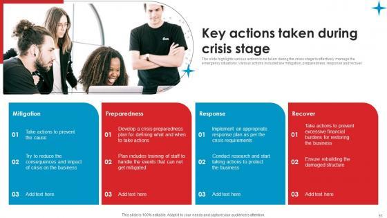 The slide highlights various actions to be taken during the crisis stage to effectively manage the emergency situations. Various actions included are mitigation, preparedness, response and recover Slidegeeks is here to make your presentations a breeze with Key Actions Taken During Crisis Strategic Guide Crisis Communication Planning Infographics Pdf With our easy to use and customizable templates, you can focus on delivering your ideas rather than worrying about formatting. With a variety of designs to choose from, you are sure to find one that suits your needs. And with animations and unique photos, illustrations, and fonts, you can make your presentation pop. So whether you are giving a sales pitch or presenting to the board, make sure to check out Slidegeeks first The slide highlights various actions to be taken during the crisis stage to effectively manage the emergency situations. Various actions included are mitigation, preparedness, response and recover