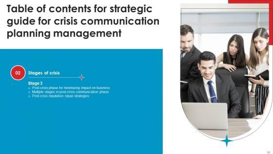 Take your projects to the next level with our ultimate collection of Table Of Contents For Strategic Guide For Crisis Communication Planning Management Portrait Pdf. Slidegeeks has designed a range of layouts that are perfect for representing task or activity duration, keeping track of all your deadlines at a glance. Tailor these designs to your exact needs and give them a truly corporate look with your own brand colors they will make your projects stand out from the rest Our Table Of Contents For Strategic Guide For Crisis Communication Planning Management Portrait Pdf are topically designed to provide an attractive backdrop to any subject. Use them to look like a presentation pro.