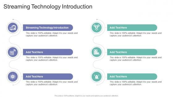Presenting our innovatively designed set of slides titled Streaming Technology Introduction In Powerpoint And Google Slides Cpb. This completely editable PowerPoint graphic exhibits Streaming Technology Introduction that will help you convey the message impactfully. It can be accessed with Google Slides and is available in both standard screen and widescreen aspect ratios. Apart from this, you can download this well structured PowerPoint template design in different formats like PDF, JPG, and PNG. So, click the download button now to gain full access to this PPT design. Our Streaming Technology Introduction In Powerpoint And Google Slides Cpb are topically designed to provide an attractive backdrop to any subject. Use them to look like a presentation pro.