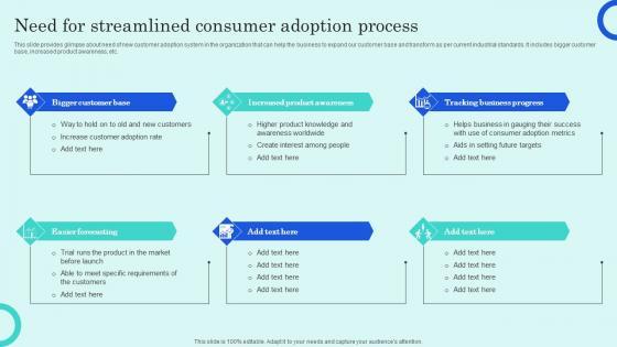 This slide provides glimpse about need of new customer adoption system in the organization that can help the business to expand our customer base and transform as per current industrial standards. It includes bigger customer base, increased product awareness, etc. Make sure to capture your audiences attention in your business displays with our gratis customizable Need For Streamlined Consumer Adoption Process Overview Of Customer Adoption Process Brochure Pdf. These are great for business strategies, office conferences, capital raising or task suggestions. If you desire to acquire more customers for your tech business and ensure they stay satisfied, create your own sales presentation with these plain slides. This slide provides glimpse about need of new customer adoption system in the organization that can help the business to expand our customer base and transform as per current industrial standards. It includes bigger customer base, increased product awareness, etc.