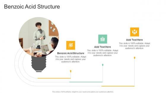 Presenting our innovatively-designed set of slides titled Benzoic Acid Structure In Powerpoint And Google Slides Cpb. This completely editable PowerPoint graphic exhibits Benzoic Acid Structure that will help you convey the message impactfully. It can be accessed with Google Slides and is available in both standard screen and widescreen aspect ratios. Apart from this, you can download this well-structured PowerPoint template design in different formats like PDF, JPG, and PNG. So, click the download button now to gain full access to this PPT design. Our Benzoic Acid Structure In Powerpoint And Google Slides Cpb are topically designed to provide an attractive backdrop to any subject. Use them to look like a presentation pro.
