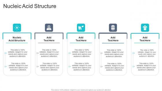 Introducing our well designed Nucleic Acid Structure In Powerpoint And Google Slides Cpb. This PowerPoint design presents information on topics like Nucleic Acid Structure. As it is predesigned it helps boost your confidence level. It also makes you a better presenter because of its high quality content and graphics. This PPT layout can be downloaded and used in different formats like PDF, PNG, and JPG. Not only this, it is available in both Standard Screen and Widescreen aspect ratios for your convenience. Therefore, click on the download button now to persuade and impress your audience. Our Nucleic Acid Structure In Powerpoint And Google Slides Cpb are topically designed to provide an attractive backdrop to any subject. Use them to look like a presentation pro.