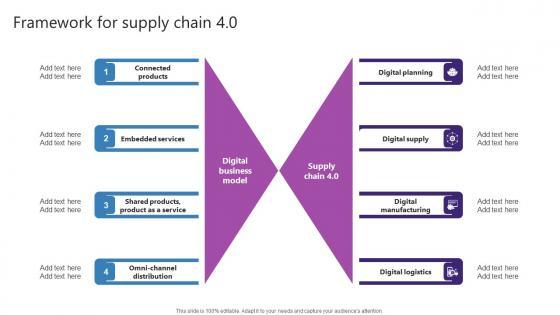 This modern and well-arranged Framework For Supply Chain 4 0 Strategic Plan For Enhancing Mockup Pdf provides lots of creative possibilities. It is very simple to customize and edit with the Powerpoint Software. Just drag and drop your pictures into the shapes. All facets of this template can be edited with Powerpoint no extra software is necessary. Add your own material, put your images in the places assigned for them, adjust the colors, and then you can show your slides to the world, with an animated slide included. Our Framework For Supply Chain 4 0 Strategic Plan For Enhancing Mockup Pdf are topically designed to provide an attractive backdrop to any subject. Use them to look like a presentation pro.