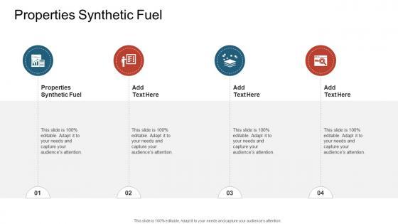 Presenting our innovatively-designed set of slides titled Properties Synthetic Fuel In Powerpoint And Google Slides Cpb. This completely editable PowerPoint graphic exhibits Properties Synthetic Fuel that will help you convey the message impactfully. It can be accessed with Google Slides and is available in both standard screen and widescreen aspect ratios. Apart from this, you can download this well-structured PowerPoint template design in different formats like PDF, JPG, and PNG. So, click the download button now to gain full access to this PPT design. Our Properties Synthetic Fuel In Powerpoint And Google Slides Cpb are topically designed to provide an attractive backdrop to any subject. Use them to look like a presentation pro.