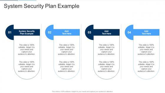 Presenting our innovatively designed set of slides titled System Security Plan Example In Powerpoint And Google Slides Cpb. This completely editable PowerPoint graphic exhibits System Security Plan Example that will help you convey the message impactfully. It can be accessed with Google Slides and is available in both standard screen and widescreen aspect ratios. Apart from this, you can download this well structured PowerPoint template design in different formats like PDF, JPG, and PNG. So, click the download button now to gain full access to this PPT design. Our System Security Plan Example In Powerpoint And Google Slides Cpb are topically designed to provide an attractive backdrop to any subject. Use them to look like a presentation pro.