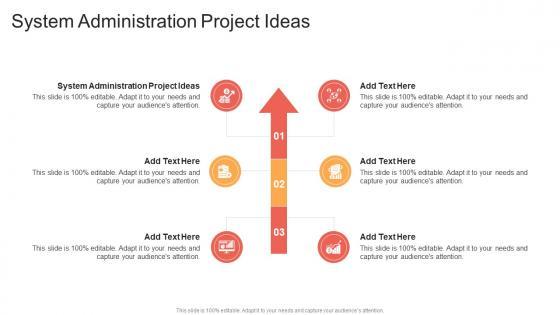 Introducing our well designed System Administration Project Ideas In Powerpoint And Google Slides Cpb This PowerPoint design presents information on topics like System Administration Project Ideas As it is predesigned it helps boost your confidence level. It also makes you a better presenter because of its high quality content and graphics. This PPT layout can be downloaded and used in different formats like PDF, PNG, and JPG. Not only this, it is available in both Standard Screen and Widescreen aspect ratios for your convenience. Therefore, click on the download button now to persuade and impress your audience. Our System Administration Project Ideas In Powerpoint And Google Slides Cpb are topically designed to provide an attractive backdrop to any subject. Use them to look like a presentation pro.