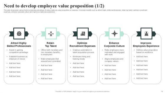 Communicate your key messages and success stories with your audience and interact with them even closely by using this readily available template that discusses Developing EVP To Hire Right Talent In Organization Ppt PowerPoint Presentation Complete Deck With Slides. You can use amazing features and highlights present in this slide to make your information more interesting, as each of the seventy slides in this complete deck is 100 percent editable and customizable. Make sure you are primed for success with a download of this template now.