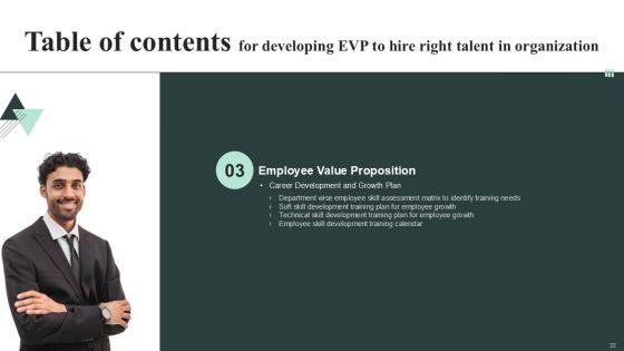 Are you in need of a template that can accommodate all of your creative concepts This one is crafted professionally and can be altered to fit any style. Use it with Google Slides or PowerPoint. Include striking photographs, symbols, depictions, and other visuals. Fill, move around, or remove text boxes as desired. Test out color palettes and font mixtures. Edit and save your work, or work with colleagues. Download Developing EVP To Hire Right Talent In Organization Table Of Contents Sample PDF and observe how to make your presentation outstanding. Give an impeccable presentation to your group and make your presentation unforgettable.