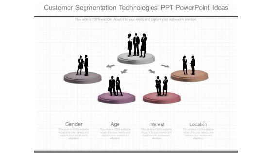 This is a customer segmentation technologies ppt powerpoint ideas. This is a four stage process. The stages in this process are gender, age, interest, location.