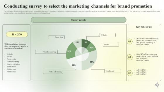 The following slide outlines in-depth survey highlighting the results of various marketing channels preferred by our customers to consume relevant information associated with the brand. The marketing channels are website, emails, social media, video advertising, guerilla marketing and trade shows. Want to ace your presentation in front of a live audience Our Competitive Branding Strategic Conducting Survey To Select The Marketing Themes PDF can help you do that by engaging all the users towards you. Slidegeeks experts have put their efforts and expertise into creating these impeccable powerpoint presentations so that you can communicate your ideas clearly. Moreover, all the templates are customizable, and easy-to-edit and downloadable. Use these for both personal and commercial use. The following slide outlines in-depth survey highlighting the results of various marketing channels preferred by our customers to consume relevant information associated with the brand. The marketing channels are website, emails, social media, video advertising, guerilla marketing and trade shows.
