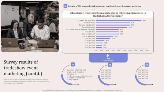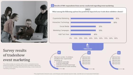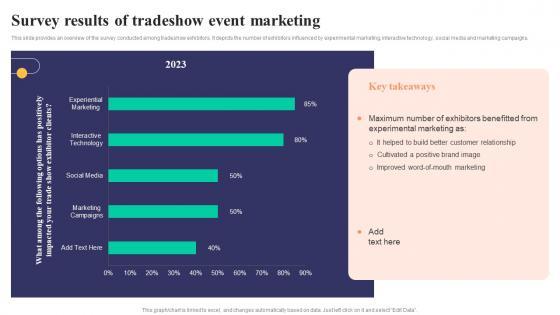 This slide provides an overview of the survey conducted among tradeshow exhibitors. It depicts the number of exhibitors influenced by experimental marketing, interactive technology, social media and marketing campaigns. Do you have to make sure that everyone on your team knows about any specific topic I yes, then you should give Trade Expo Survey Results Of Tradeshow Event Marketing Microsoft PDF a try. Our experts have put a lot of knowledge and effort into creating this impeccable Trade Expo Survey Results Of Tradeshow Event Marketing Microsoft PDF. You can use this template for your upcoming presentations, as the slides are perfect to represent even the tiniest detail. You can download these templates from the Slidegeeks website and these are easy to edit. So grab these today.