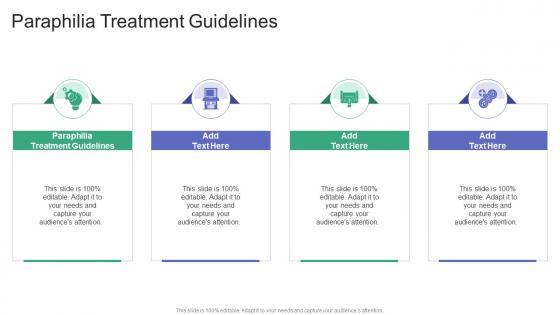 Introducing our well designed Paraphilia Treatment Guidelines In Powerpoint And Google Slides Cpb. This PowerPoint design presents information on topics like Paraphilia Treatment Guidelines. As it is predesigned it helps boost your confidence level. It also makes you a better presenter because of its high quality content and graphics. This PPT layout can be downloaded and used in different formats like PDF, PNG, and JPG. Not only this, it is available in both Standard Screen and Widescreen aspect ratios for your convenience. Therefore, click on the download button now to persuade and impress your audience. Our Paraphilia Treatment Guidelines In Powerpoint And Google Slides Cpb are topically designed to provide an attractive backdrop to any subject. Use them to look like a presentation pro.