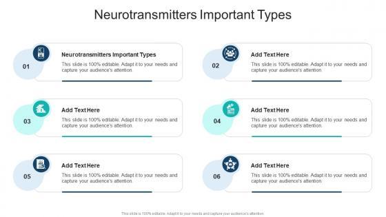 Presenting our innovatively designed set of slides titled Neurotransmitters Important Types In Powerpoint And Google Slides Cpb. This completely editable PowerPoint graphic exhibits Neurotransmitters Important Types that will help you convey the message impactfully. It can be accessed with Google Slides and is available in both standard screen and widescreen aspect ratios. Apart from this, you can download this well structured PowerPoint template design in different formats like PDF, JPG, and PNG. So, click the download button now to gain full access to this PPT design. Our Neurotransmitters Important Types In Powerpoint And Google Slides Cpb are topically designed to provide an attractive backdrop to any subject. Use them to look like a presentation pro.