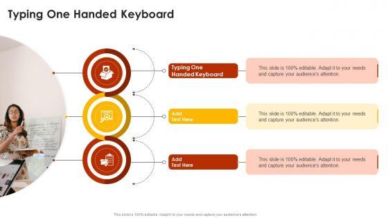 Introducing our well designed Typing One Handed Keyboard In Powerpoint And Google Slides Cpb. This PowerPoint design presents information on topics like Typing One Handed Keyboard. As it is predesigned it helps boost your confidence level. It also makes you a better presenter because of its high quality content and graphics. This PPT layout can be downloaded and used in different formats like PDF, PNG, and JPG. Not only this, it is available in both Standard Screen and Widescreen aspect ratios for your convenience. Therefore, click on the download button now to persuade and impress your audience. Our Typing One Handed Keyboard In Powerpoint And Google Slides Cpb are topically designed to provide an attractive backdrop to any subject. Use them to look like a presentation pro.