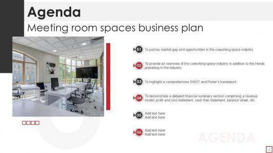 Take advantage of this well-researched and professionally-designed Meeting Room Spaces Business Plan Ppt Powerpoint to ace your next business meeting. Use this PPT complete deck to impress the management with your ideas for business growth and revenue increase. Use the sixty two-slide Template Bundle to leave no stone unturned as you present each step of your process. Employ the visual tools within the slides such as graphs, charts, and tables to ensure that the audience can never look away from the presentation. With attractive visuals, easy to understand structure, and your knowledge, your presentation will have the attention it deserves. Download this PPT Template from the link below. Our Meeting Room Spaces Business Plan Ppt Powerpoint are topically designed to provide an attractive backdrop to any subject. Use them to look like a presentation pro.