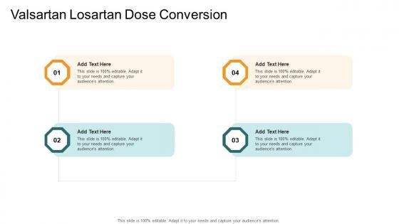 Presenting our innovatively designed set of slides titled Valsartan Losartan Dose Conversion In Powerpoint And Google Slides Cpb This completely editable PowerPoint graphic exhibits Valsartan Losartan Dose Conversion that will help you convey the message impactfully. It can be accessed with Google Slides and is available in both standard screen and widescreen aspect ratios. Apart from this, you can download this well structured PowerPoint template design in different formats like PDF, JPG, and PNG. So, click the download button now to gain full access to this PPT design. Our Valsartan Losartan Dose Conversion In Powerpoint And Google Slides Cpb are topically designed to provide an attractive backdrop to any subject. Use them to look like a presentation pro.