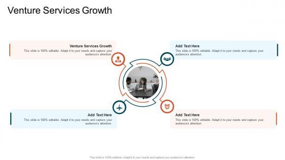 Introducing our well designed Venture Services Growth In Powerpoint And Google Slides Cpb. This PowerPoint design presents information on topics like Venture Services Growth. As it is predesigned it helps boost your confidence level. It also makes you a better presenter because of its high quality content and graphics. This PPT layout can be downloaded and used in different formats like PDF, PNG, and JPG. Not only this, it is available in both Standard Screen and Widescreen aspect ratios for your convenience. Therefore, click on the download button now to persuade and impress your audience. Our Venture Services Growth In Powerpoint And Google Slides Cpb are topically designed to provide an attractive backdrop to any subject. Use them to look like a presentation pro.