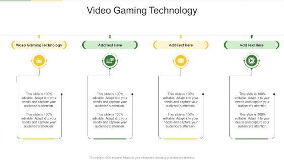Introducing our well designed Video Gaming Technology In Powerpoint And Google Slides Cpb. This PowerPoint design presents information on topics like Video Gaming Technology. As it is predesigned it helps boost your confidence level. It also makes you a better presenter because of its high quality content and graphics. This PPT layout can be downloaded and used in different formats like PDF, PNG, and JPG. Not only this, it is available in both Standard Screen and Widescreen aspect ratios for your convenience. Therefore, click on the download button now to persuade and impress your audience. Our Video Gaming Technology In Powerpoint And Google Slides Cpb are topically designed to provide an attractive backdrop to any subject. Use them to look like a presentation pro.
