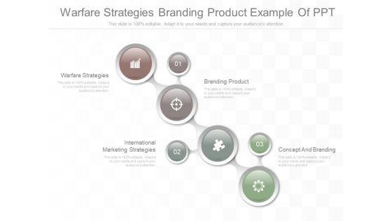 This is a warfare strategies branding product example of ppt. This is a three stage process. The stages in this process are warfare strategies, branding product, international marketing strategies, concept and branding.