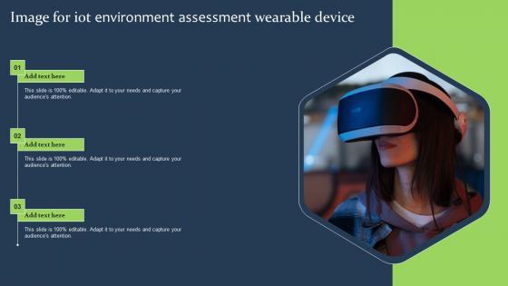 Pitch your topic with ease and precision using this Image For IOT Environment Assessment Wearable Device Ideas Pdf This layout presents information on Image For IOT Environment, Assessment Wearable Device It is also available for immediate download and adjustment. So, changes can be made in the color, design, graphics or any other component to create a unique layout. Our Image For IOT Environment Assessment Wearable Device Ideas Pdf are topically designed to provide an attractive backdrop to any subject. Use them to look like a presentation pro.