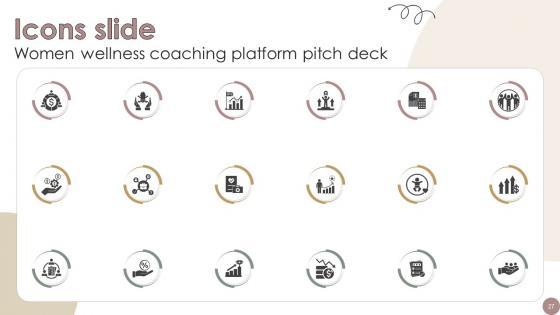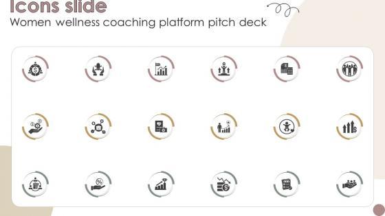 Download our innovative and attention grabbing Icons Slide Women Wellness Coaching Platform Pitch Deck template. The set of slides exhibit completely customizable icons. These icons can be incorporated into any business presentation. So download it immediately to clearly communicate with your clientele. Our Icons Slide Women Wellness Coaching Platform Pitch Deck are topically designed to provide an attractive backdrop to any subject. Use them to look like a presentation pro.