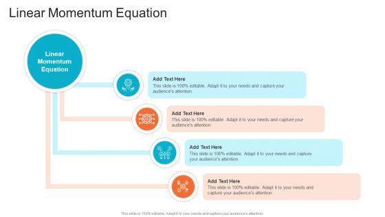 Introducing our well designed Linear Momentum Equation In Powerpoint And Google Slides Cpb This PowerPoint design presents information on topics like Linear Momentum Equation As it is predesigned it helps boost your confidence level. It also makes you a better presenter because of its high quality content and graphics. This PPT layout can be downloaded and used in different formats like PDF, PNG, and JPG. Not only this, it is available in both Standard Screen and Widescreen aspect ratios for your convenience. Therefore, click on the download button now to persuade and impress your audience. Our Linear Momentum Equation In Powerpoint And Google Slides Cpb are topically designed to provide an attractive backdrop to any subject. Use them to look like a presentation pro.