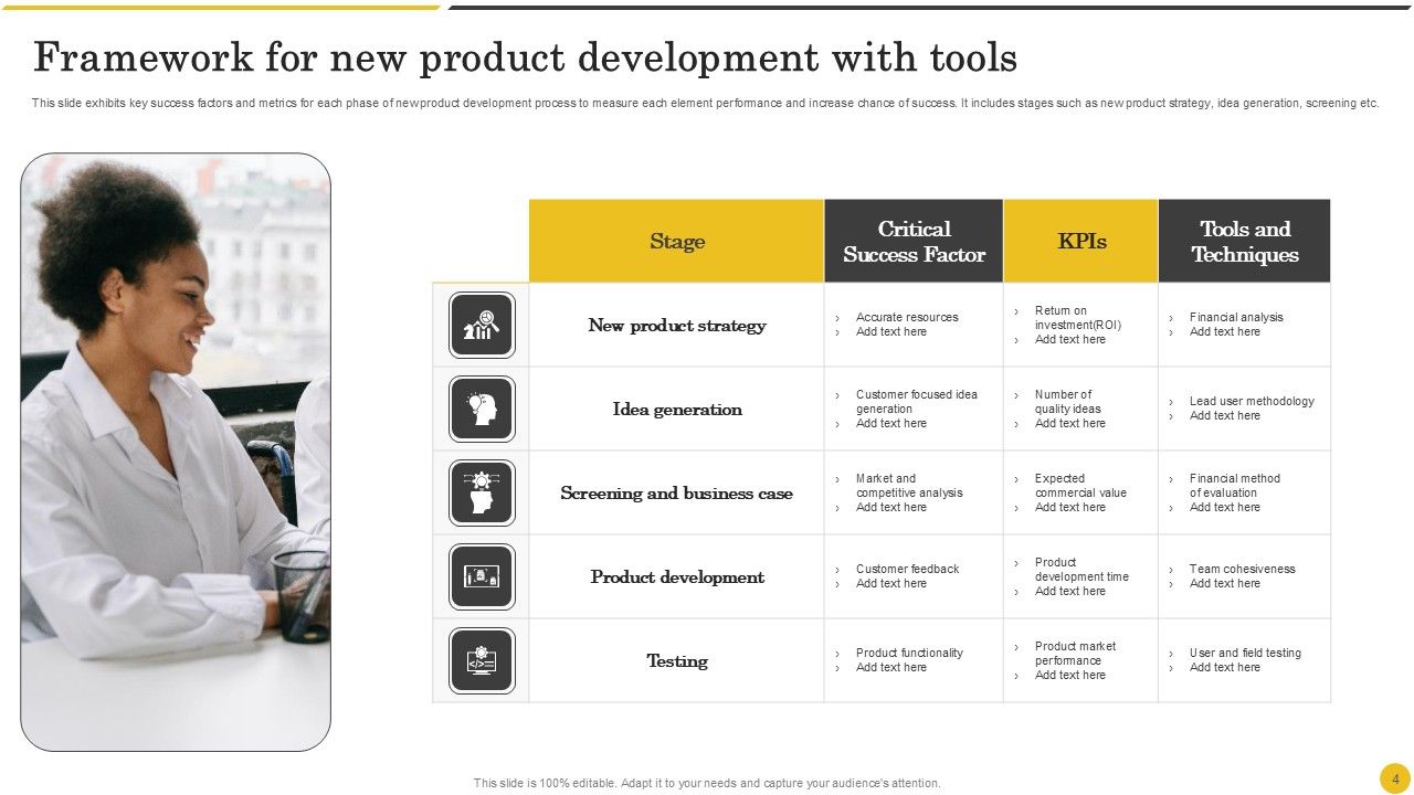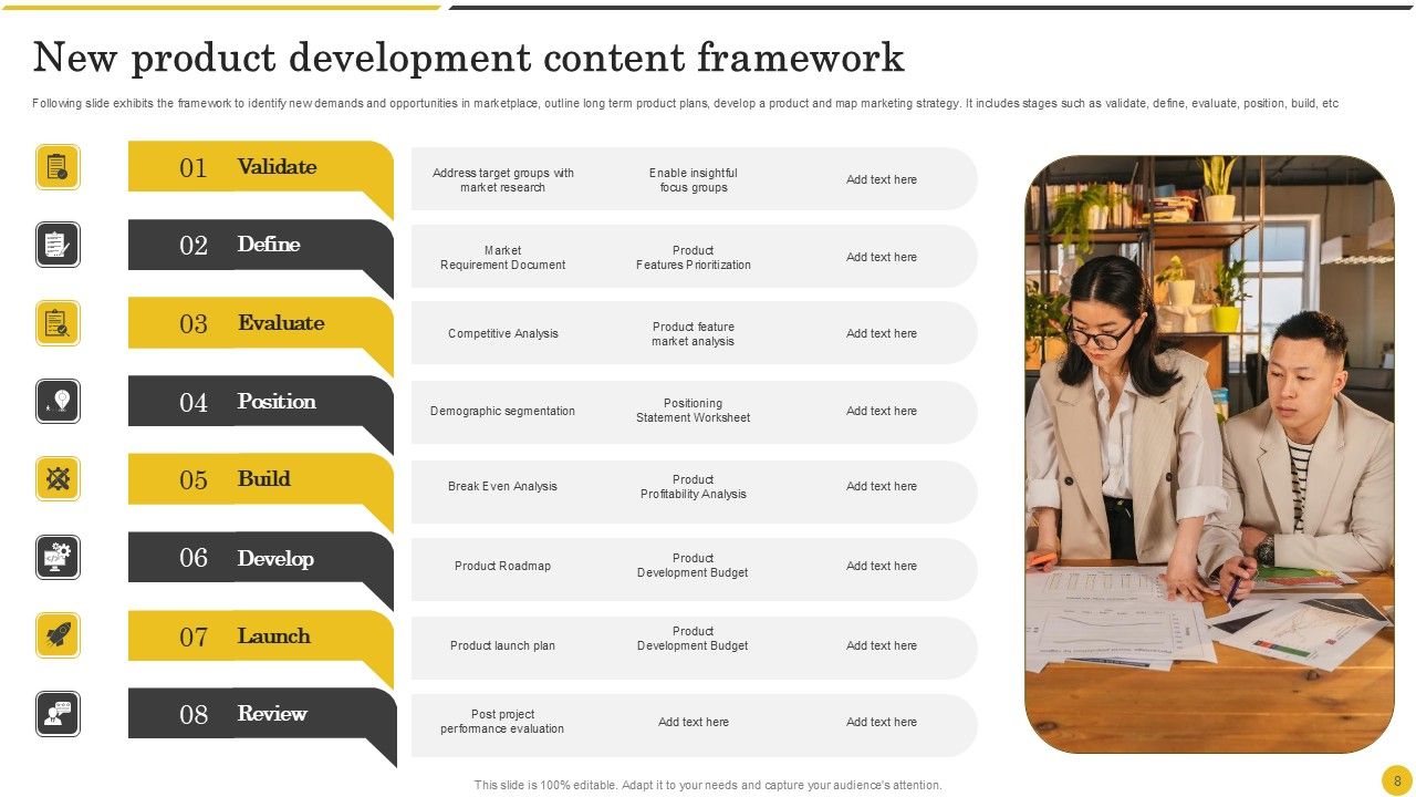 If designing a presentation takes a lot of your time and resources and you are looking for a better alternative, then this Product Development Model Ppt PowerPoint Presentation Complete Deck With Slides is the right fit for you. This is a prefabricated set that can help you deliver a great presentation on the topic. All the twelve slides included in this sample template can be used to present a birds-eye view of the topic. These slides are also fully editable, giving you enough freedom to add specific details to make this layout more suited to your business setting. Apart from the content, all other elements like color, design, theme are also replaceable and editable. This helps in designing a variety of presentations with a single layout. Not only this, you can use this PPT design in formats like PDF, PNG, and JPG once downloaded. Therefore, without any further ado, download and utilize this sample presentation as per your liking.