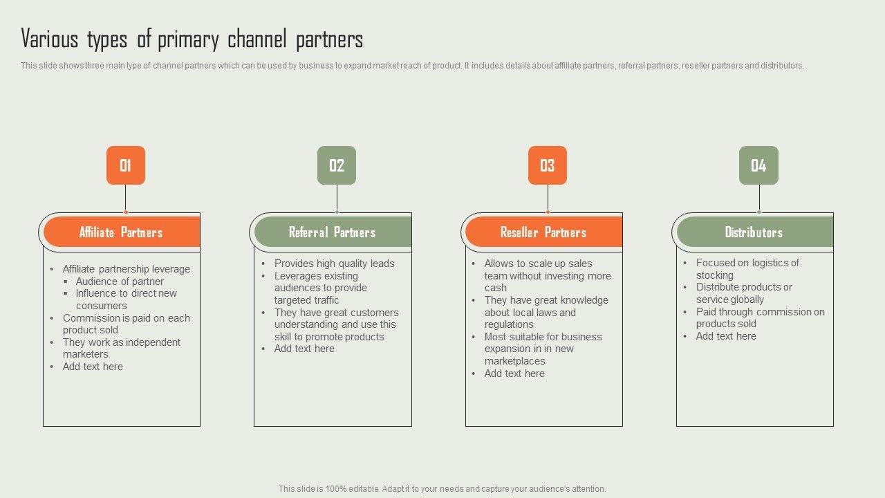 Product Marketing And Sales Expansion Through Channel Various Types Of Primary Channel Partners Slides PDF