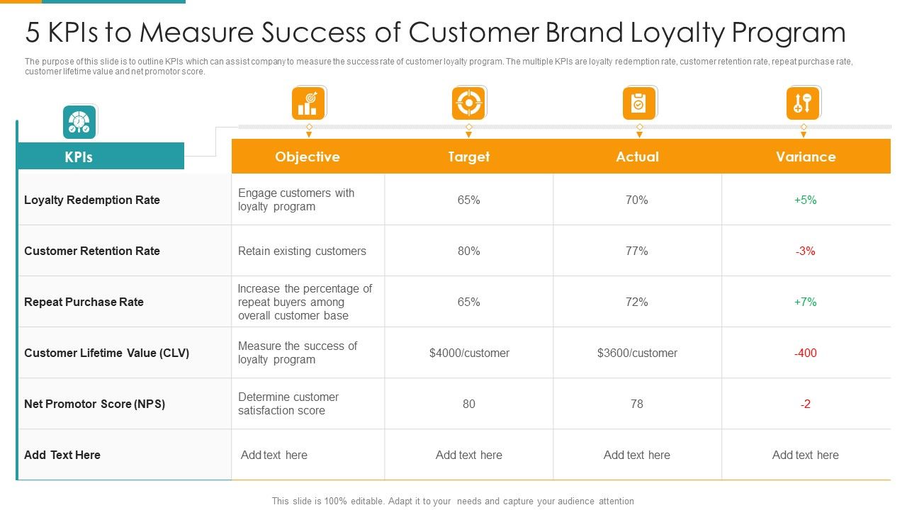 5 KPIs To Measure Success Of Customer Brand Loyalty Program Ppt PowerPoint Presentation File Deck PDF