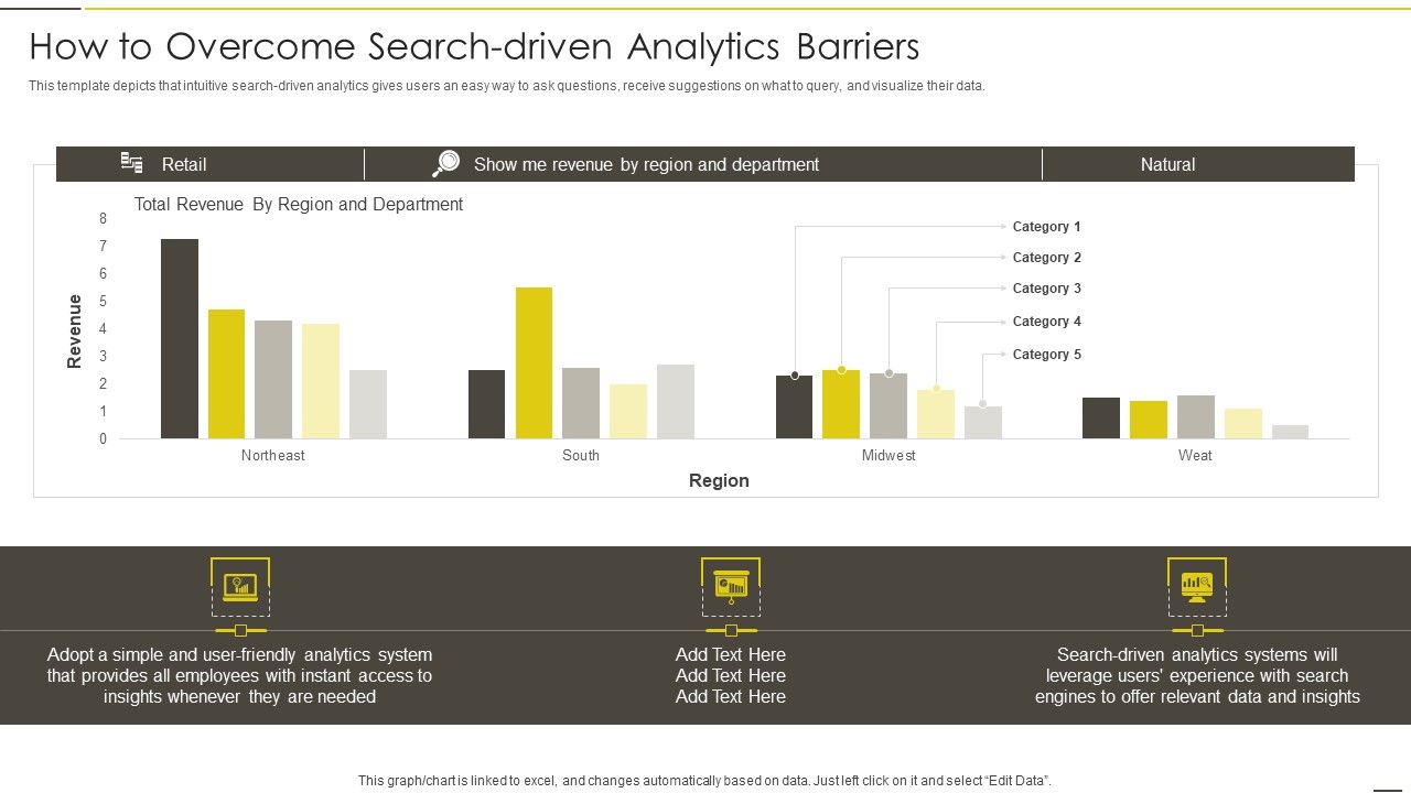 This template depicts that intuitive search-driven analytics gives users an easy way to ask questions, receive suggestions on what to query, and visualize their data.Deliver and pitch your topic in the best possible manner with this Administered Data And Analytic Quality Playbook How To Overcome Search Driven Analytics Barriers Infographics PDF Use them to share invaluable insights on Region Department, Analytics, Provides Employees and impress your audience. This template can be altered and modified as per your expectations. So, grab it now.