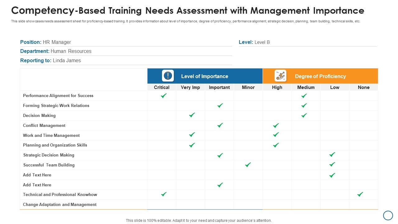 Competency Based Training Needs Assessment With Management Importance Summary PDF with all 2 slides: