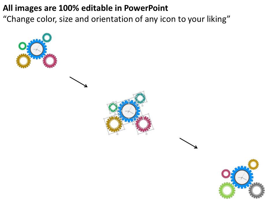 This PowerPoint template has been designed with graphics of gears clock design and icons. Download this slide to display your ideas in visual manner. Grab centre stage with this slide and capture the attention of your audience.