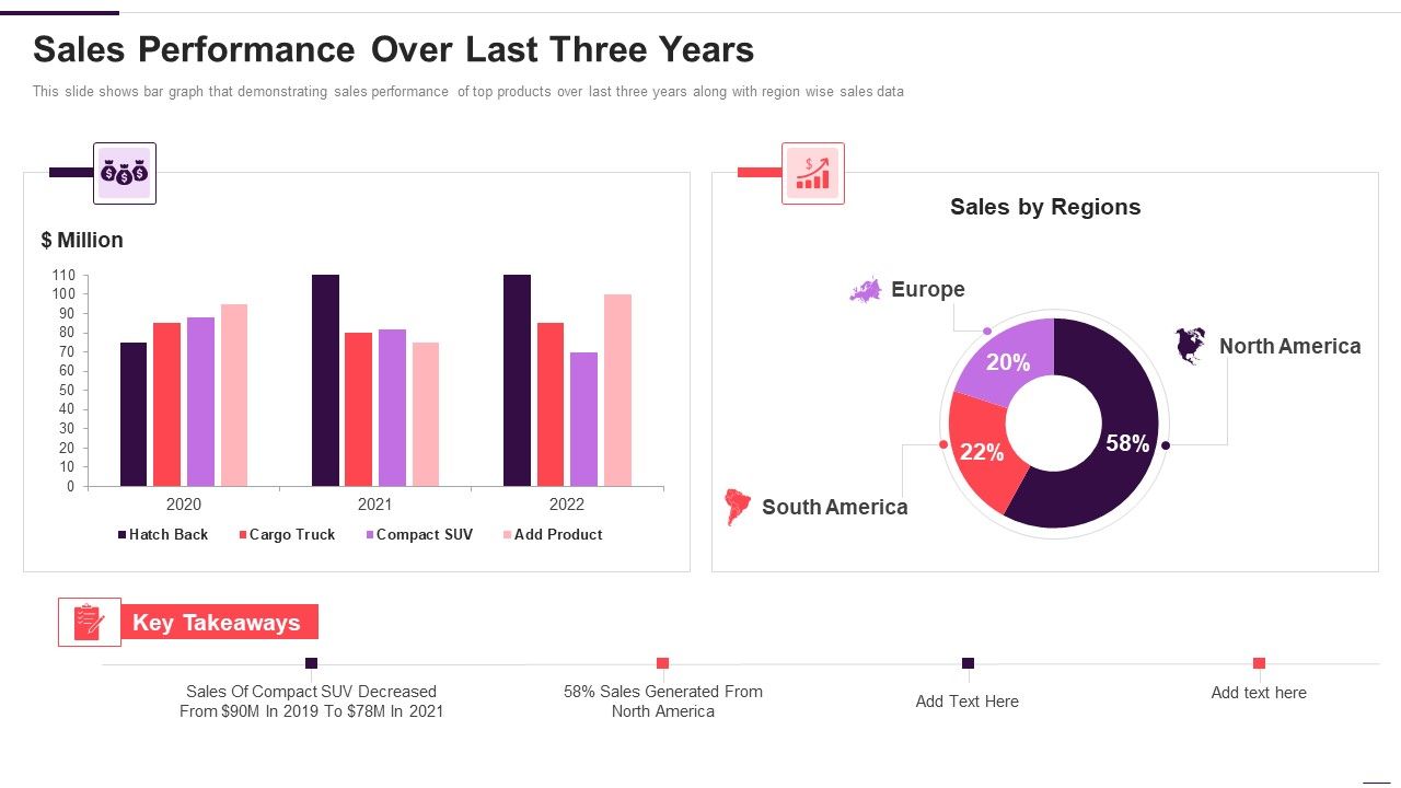 This slide shows bar graph that demonstrating sales performance of top products over last three years along with region wise sales data. Deliver an awe inspiring pitch with this creative implementation plan for new product launch sales performance over last three years guidelines pdf bundle. Topics like sales performance over last three years can be discussed with this completely editable template. It is available for immediate download depending on the needs and requirements of the user.
