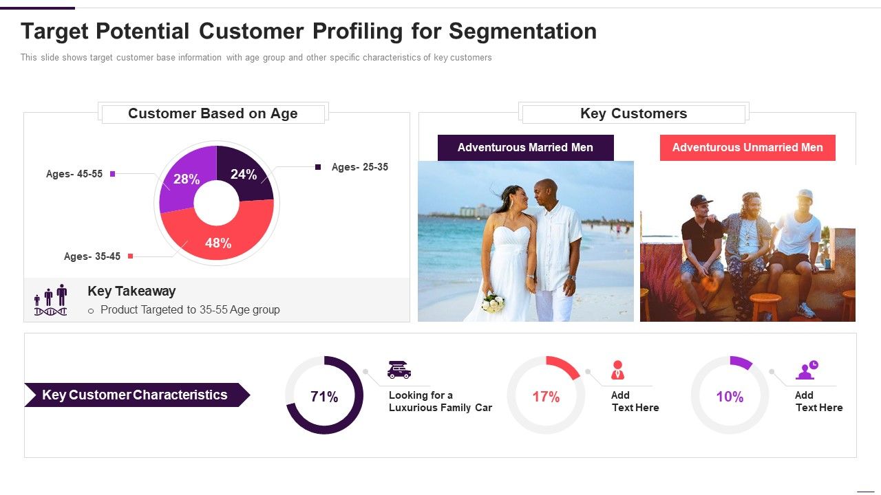 This slide shows target customer base information with age group and other specific characteristics of key customers. Deliver and pitch your topic in the best possible manner with this implementation plan for new product launch target potential customer profiling for segmentation topics pdf . Use them to share invaluable insights on product targeted, customer and impress your audience. This template can be altered and modified as per your expectations. So, grab it now.