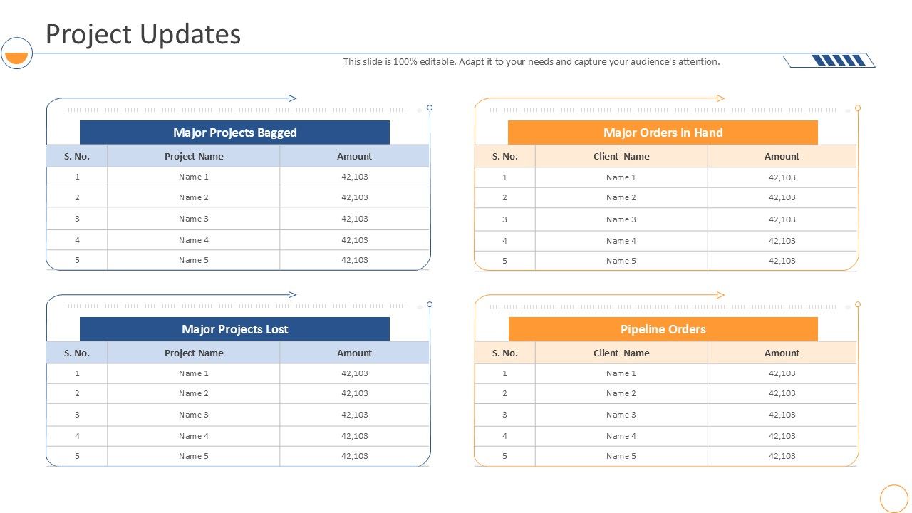 Deliver an awe inspiring pitch with this creative monthly company performance analysis project updates structure pdf bundle. Topics like project updates can be discussed with this completely editable template. It is available for immediate download depending on the needs and requirements of the user.